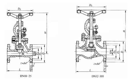 注釋:以上外形尺寸的公稱壓力為PN16,即1.6MPa。